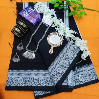 Black soft silk joba katan saree combo package.